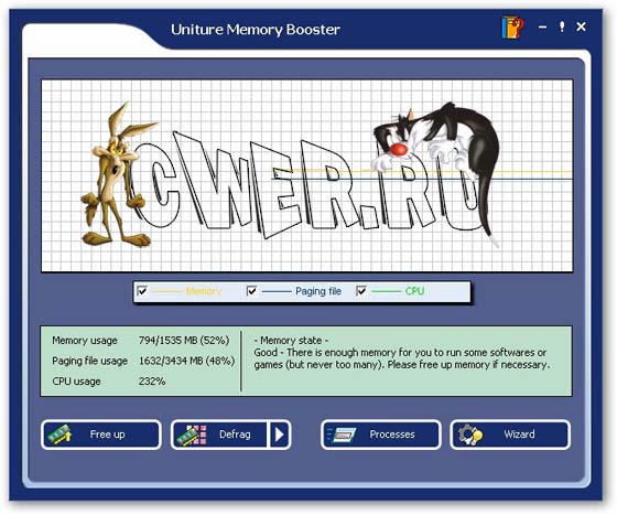 Uniture Memory Booster - очищает, освобождает и оптимизирует ОЗУ вашего персонального компьютера, давая ему работать быстрее и максимально эффективно. Она непрестанно проверяет оперативную память компьютера, и как только количество свободной оперативной памяти уменьшается, она завершает ненужные процессы, увеличивая быстродействие.