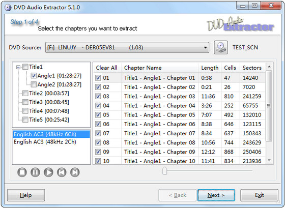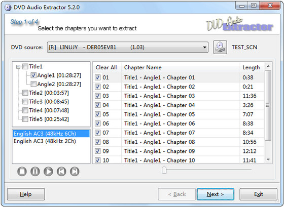 DVD Audio Extractor — это мощная программа, которая поможет вам извлечь аудиотреки из DVD. С помощью данного приложения можно сохранять аудио в файлы OGG, MP3 или Wave. Кроме того, можно извлекать аудио непосредственно в PCM, MPA, AC3 или DTS файлы. Интерфейс программы очень прост и понятен, а имеющиеся в ней встроенные "мастера" ещё больше облегчат работу с DVD Audio Extractor.