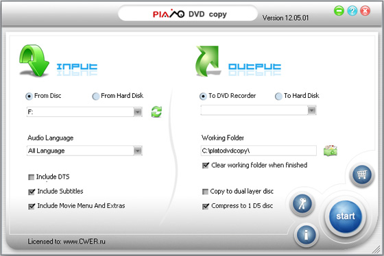Plato DVD Copy - инструмент для копирования ваших любимых DVD фильмов, без потерь качества, для сохранения копий оригинальных дисков, которые как и оригинал, могут проигрываться на любых DVD плеерах. Дружественный интерфейс программы, облегчает процесс создания копий. Позволяет скопировать только основной фильм, удалив ненужные субтитры и звуковые дорожки, копировать DVD9 на обычный DVD5 диск, скопировать DVD на жесткий диск, и наоборот, записать DVD с жесткого диска.