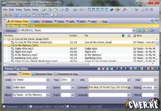 Tag&Rename - программа, предназначенная для ручного управления музыкальными файлами. С помощью данной утилиты Вы сможете быстро и легко переименовать вашу музыкальную коллекцию, используя встроенную информацию в тегах, создавать новые или редактировать существующие теги, а также создавать теги, основанные на именах файлов...