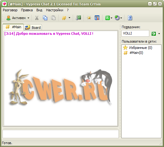 Vypress Chat – компактный и удобный чат для локальной сети. Программа имеет хорошо продуманный интерфейс и не требует выделенного сервера. Утилита предназначена для средних и малых локальных сетей (до 300 компьютеров). Vypress Chat поддерживает "смайлы" и макросы, ведет статистику активности в сети, сохраняет протоколы переговоров в формате XML и пр.