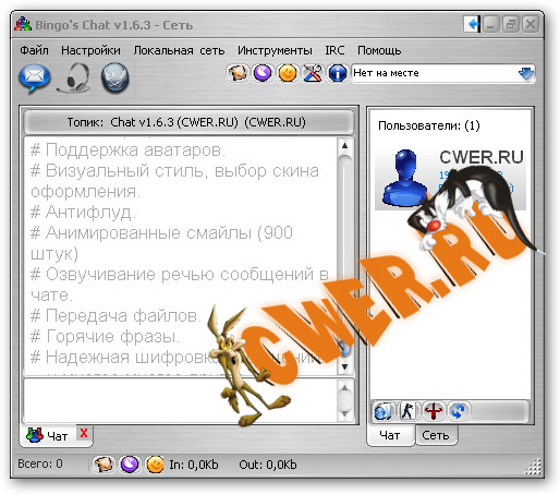 Bingo Chat - это голосовой и локальный чат для общения с помощью микрофона внутри локальной сети. Также это irc клиент, позволяющий общаться в интернете.