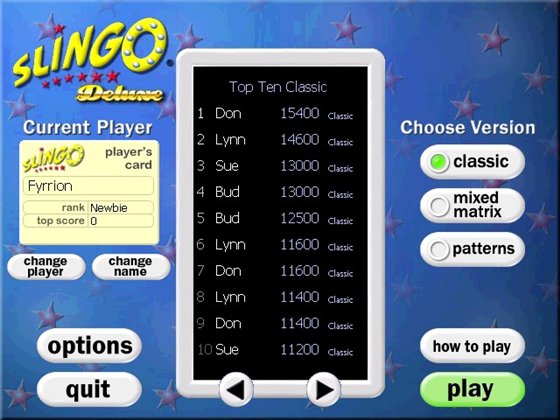 Эта игра собрала в себе огромное количество лучших хитов казино-игр, когда-либо издававшихся для PC. Точно так же как и в Slingo, в ваши любимые игры добавлена своя уникальная изюминка. Шведское лото, сумасшедшая 7ка, cупер кено, джокер-покер, Brasil Bonus Bet 21, абсолютный покер, мега джек пот лото и покер невообразимой жадности.