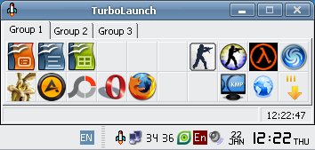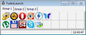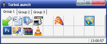 TurboLaunch - небольшая программа для быстрого запуска часто используемых вами программ. Утилита полностью настраиваема и представляет из себя панель с иконками приложений, в которую вы сможете добавить любое приложение, которое часто используете. При этом, вы сможете поменять значок иконки, которая будет отображаться в панели, на любой другой, установить горячие клавиши для быстрого запуска приложения, установить стиль запуска приложения (в полный экран, свернутое или развернутое окно и скрытый запуск), указать приоритет процесса и прочее. Также имеется возможность для добавления различных действий при нажатии иконки на панели, например, выключение компьютера, запуск экранной заставки, вызов командной строки и т.д. Вы сможете добавить большое количество приложений в панель, которая разделена на несколько групп для удобства использования.