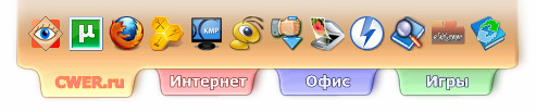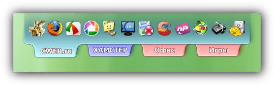 sTabLauncher - программа предлагающая приятный интерфейс для запуска программ — полупрозрачные вкладочки с ярлыками утилит располагаются в верхней части экрана. Выбрать можно не только окраску, но и стиль для всех вкладок, например, сделать края «изорванными». Настраивается также уровень прозрачности панели с вкладками.