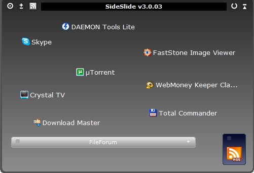 SideSlide - позволяет добавить на рабочий стол всплывающую панель для быстрого запуска, причем для запуска не только программ, но и разместить там ссылки на файлы и папки, URL-ссылки веб-сайтов, различные команды, текстовые заметки и даже картинки, а также установить напоминания.