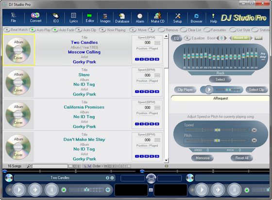DJ Studio Pro является отличным приложением-аудиоплеером, которое создано для микширования вашей любимой музыки, как если бы вы были профессиональным ди-джеем! Данная программа проигрывает все виды аудио-файлов, включая M4A( iPod aac), MP4 и музыку с дисков. Приложение может мгновенно закидывать треки с CD в память.