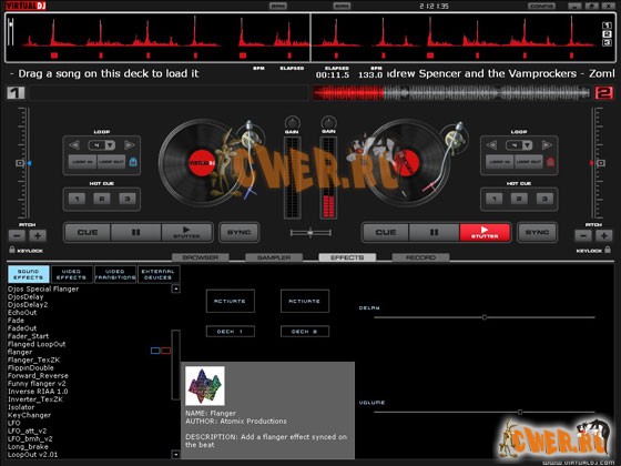 Virtual DJ - программа для диджеев, позволяющая микшировать музыку в режиме реального времени с использованием эффектов, переходов и многого другого. Программа отлично подходит как для профессиональных диджеев, так и для новичков. Virtual DJ содержит в себе множество аудио-инструментов, эффектов и примочек, созданных специально для ди-джеев, есть также возможность создавать музыкальные треки из MP3-файлов во встроенном плеере, программа позволяет разгонять музыку под нужный темп или увеличивать скорость звучания в ручном и в автоматическом режиме. Поддерживается возможность синхронизации треков по темпу и скорости с помощью нажатия кнопки Sync. Результат готового трека можно записать в WAV или MP3 формат.
