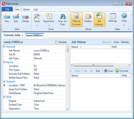 FileConvert программа для конвертирования различных файлов в PDF документы в пакетном режиме. С помощью этой программы вы сможете преобразовать существующие файлы, такие как: сканы документов, факсы и документы Word в PDF форматы с возможностью текстового поиска. Программа будет следить за новыми сканами с сетевого сканера или сканировать существующие файлы в PDF. Для этого вам нужно создать новое задание, в котором вы указываете путь до папки приходящих со сканера изображений в формате TIFF, указываете папку для сохранения преобразованных файлов, промежуток времени, через который программа должна проверять исходящую папку на наличие новых сканов (можно установить ручную проверку) и все. FileConvert был специально разработан для небольших офисов, в составе которых нет выделенного для таких задач ИТ-персонала.