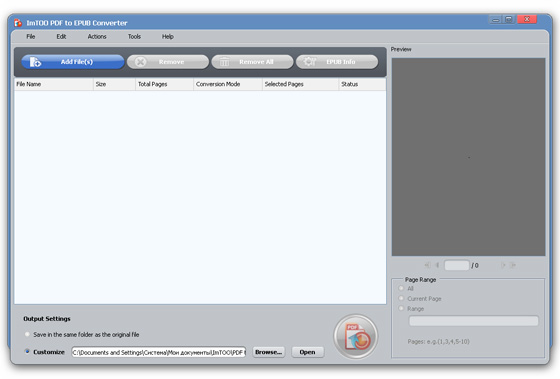 ImTOO PDF to EPUB Converter - легкий в использовании, быстрый и эффективный инструмент для преобразования PDF в EPUB, специально разработанный для преобразования PDF в EPUB, что позволяет просматривать PDF файлы на электронных книгах поддерживающих формат EPUB. Adobe Acrobat Reader больше не требуется, если преобразовать PDF в EPUB все оригинальные особенности PDF будут сохранены.