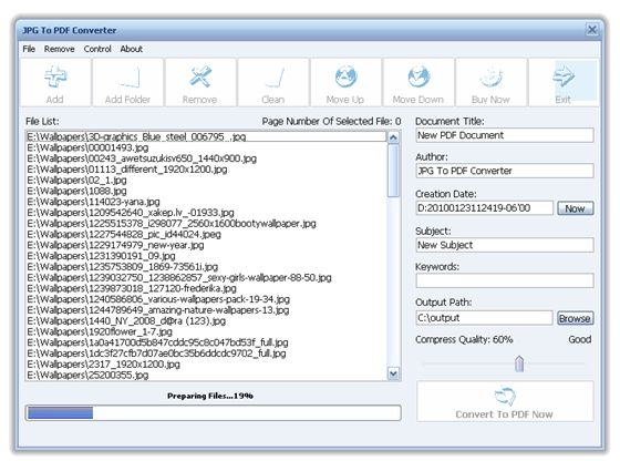 JPG To PDF Converter - это приложение для windows, которое быстро конвертирует множество изображений в единый pdf документ. С помощью JPG To PDF Converter пользователи смогут создавать pdf из изображений форматов JPG, GIF, BMP, TIF, PNG и PSD.