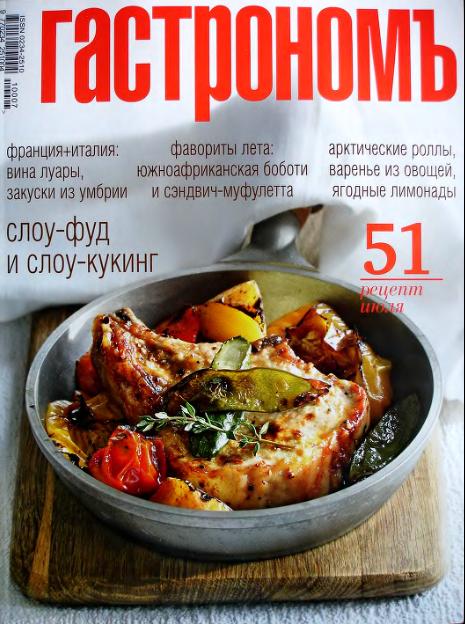 Великолепный российский кулинарный журнал европейского уровня! Издание сотрудничает с лучшими шеф-поварами Москвы, знаменитыми кулинарными блоггерами, профессиональными фуд-стилистами и фотографами-гурманами. С ним работают великолепные журналисты. Это масса полезной и увлекательной информации о новых продуктах, правилах этикета, диетах и системах правильного питания, о ресторанах и шеф-поварах. Это интервью со звездами и их фирменные рецепты, рассказы о кулинарных традициях других стран и аппетитные истории из жизни знаменитых людей.