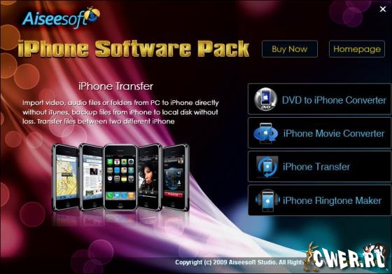 Пакет программ, включающий в себя конвертер аудио, видео файлов различных форматов и граббер видео и DVD в форматы для Apple iPhone, поддержка MPG, MPEG, MPEG2, VOB, MP4, M4V, RM, RMVB, WMV, ASF, QT, TS, MKV, AVI, 3GP, FLV, MPV, MOD, TOD и других форматов в iPhone/iPhone (3G) MP4, H.264, MOV, M4V, извлечение аудио из видео и DVD в AAC, MP3, WAV, AIFF, M4A форматы, конвертер между MP3, MP2, AAC, AC3, WAV, MID, MIDI, WMA, M4A, RA, RAM и другими аудио форматами, создание рингтонов из аудио и видео файлов, поддержка iPhone, iPhone (3G), iPod, iPod nano 4, iPod touch, iPod touch 2, iPod classic, iPod shuffle, Apple TV и других, предварительный просмотр видео, пакетный режим работы, настройка параметров сохранения с выбором из списка стандартных.