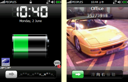 Блокировка экрана аля iPhone. Для разблокировки надо провести пальцем по специальной полоске.