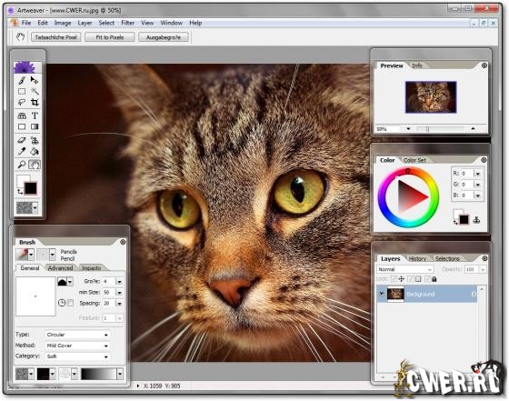 Artweaver - очень мощный графический редактор, сравним по функционалу с Adobe Photoshop. Среди ее возможностей можно выделить работу со слоями, импорт и экспорт графики в различные форматы. Также в Artweaver имеются всевозможные фильтры, которые можно применять редактируя рисунки (эффект ветра, размытость, волны, гранулирование, эффект масла и т.д). Среди ее возможностей можно выделить работу со слоями, импорт и экспорт графики в различные форматы. Также в Artweaver имеются всевозможные фильтры, которые можно применять редактируя рисунки (эффект ветра, размытость, волны, гранулирование, эффект масла и т.д).