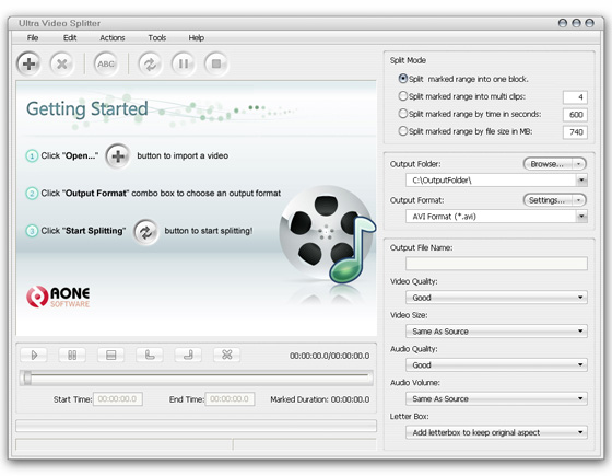 Boilsoft Video Splitter - инструмент позволяющий вам порезать большой фильм на несколько более маленьких частей или небольшие клипы. Программа поддерживает: AVI, Divx, MPEG-4, MPEG-1, MPEG-2, ASF, WMV, WMA и другие видео форматы. Встроенный проигрыватель позволяет с точностью до секунды выбрать начало и конец фрагмента, а встроенная функция разбиения видео файла на равные части или по определенному размеру поможет вам быстро и удобно нарезать ролики без потери качества. Программа поддерживает работу с файлами больше 2GB и отличается от большинства высокой скоростью работы.