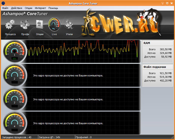 Ashampoo Core Tuner - программа от немецкого разработчика, которая позволяет оптимизировать производительность вашего многоядерного процессора. Многие современные компьютеры работают на двухядерных процессорах, некоторые даже на четырехядерных. К сожалению, Windows не всегда хорошо управляет несколькими ядрами, из-за чего вы не получаете реальную мощность и производительность от купленного процессора. Данная программа позволяет исправить ситуацию, оптимизировав производительность вашего ЦПУ.