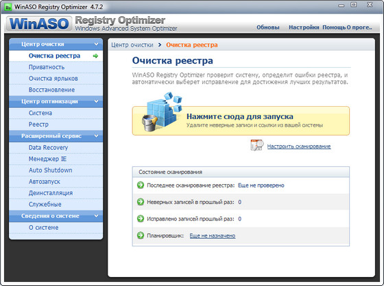 WinASO Registry Optimizer - это продвинутая программа очистки и оптимизации Windows, которая позволяет Вам безопасно очищать и восстанавливать проблем с реестром, сделав несколько щелчков мышью. Удаляя устаревшую информацию и настраивая параметры в реестре Windows, данная программа значительно ускоряет вашу систему. WinASO Registry Optimizer разработан для исправления обычных проблем, таких как: отклоненный доступ к отсутствующим устройствам и дискам, нелегально измененные параметры Internet Explorer и т.д.