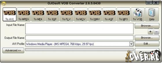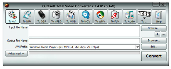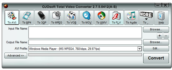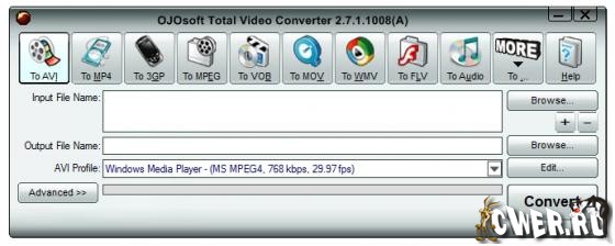 OJOsoft Total Video Converter - очень мощная программа, которая позволяет конвертировать любые видеофайлы в форматы 3gp (формат мобильных телефонов и наладонников), mp4, psp, iPod, swf, flv, DVD, VCD.