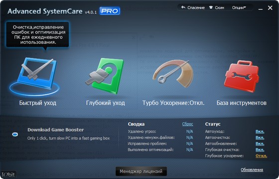 Advanced SystemCare - программа, включающая в себя множество модулей для оптимизации, настройки и повышения производительности компьютеров, находящихся под управлением операционными системами Windows 2000/XP/Vista/7. Благодаря возможностям программы вы сможете очистить ПК от шпионского и рекламного ПО, обнаружить и заранее устранить возможные угрозы и бреши в системе безопасности ОС, исправить ошибки в системном реестре, очистить временные и ненужные файлы, управлять списками автозагрузок, оптимизировать работу систем.
