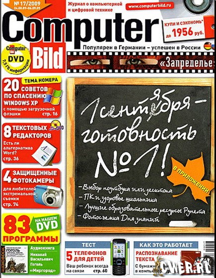 ComputerBild - крупнейшей европейский журнал о компьютерах. Тема номера: как улучшить работу операционной системы, установленной на вашем компьютере (речь пойдет о Windows XP/Vista/7), а также как выжать максимум из офисных приложений Microsoft Office Word, Excel и PowerPoint 2007.