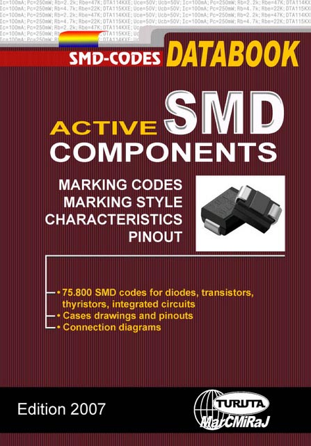 В справочнике приводится кодовая маркировка (SMD-коды) для 75800 активных электронных компонентов (диодов, тиристоров, биполярных и полевых транзисторов, интегральных микросхем). SMD-коды разделены по типам корпусов и расположены в таблицах в алфавитно-цифровом порядке. Даны, также, логотипы и адреса фирм-производителей электронных компонентов, схематические рисунки корпусов и назначение выводов (цоколевка) для дискретных полупроводниковых компонентов и большинства интегральных микросхем, типовые схемы подключения для большинства интегральных микросхем.