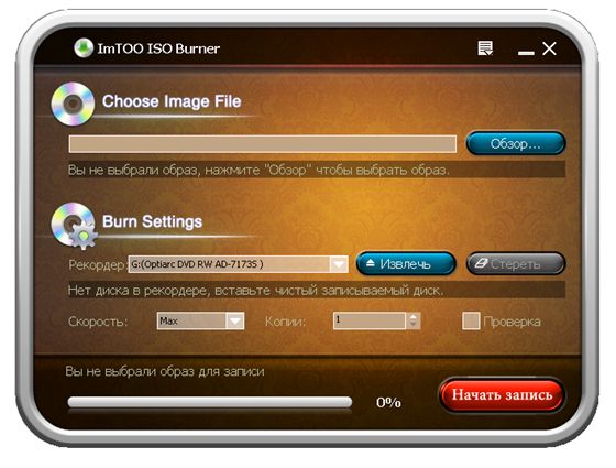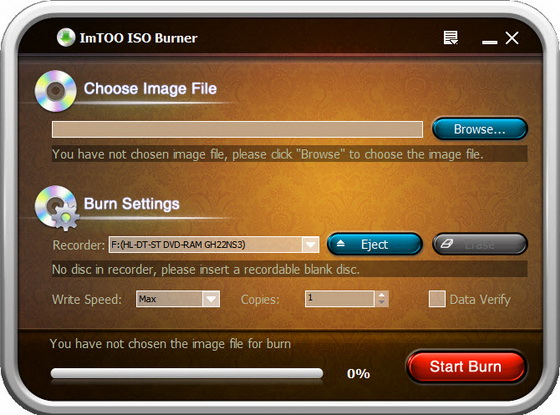ImTOO ISO Burner - утилита с интуитивно понятным интерфейсом для записи образов в формате ISO на различные типы носителей: CD-R, CD-RW, DVD-R, DVD+R, DVD-RW, DVD+RW и DVD+R DL. Поддерживается запись дисков CD и DVD с данными (в том числе — создание загрузочных дисков), а также мультимедийных дисков.