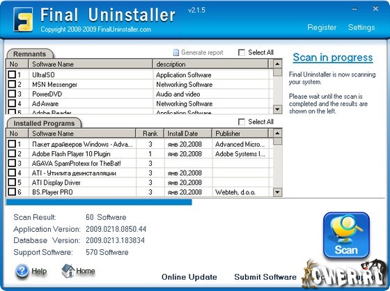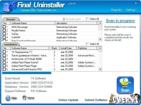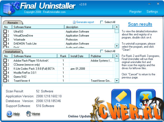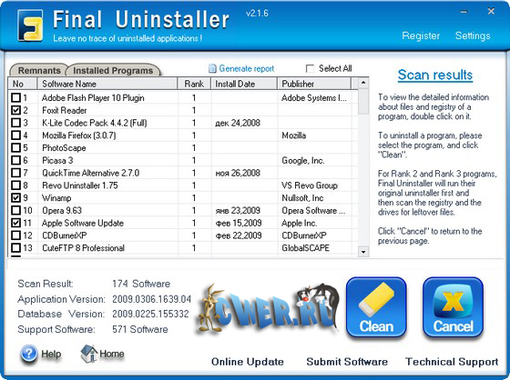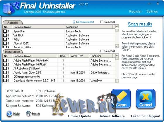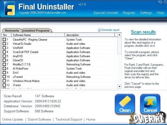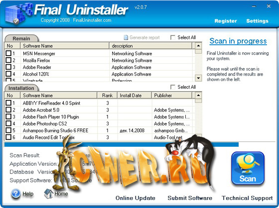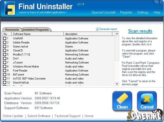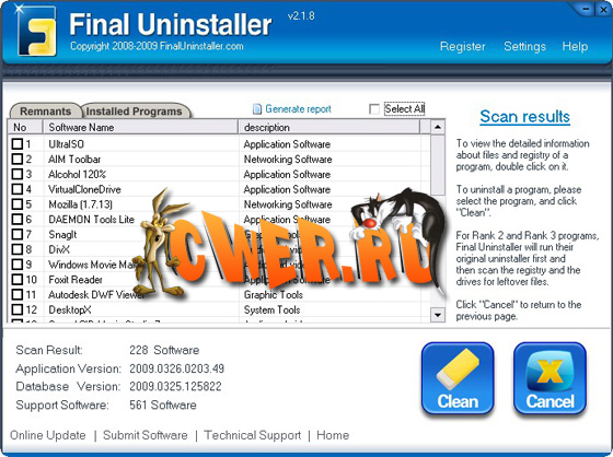 Final Uninstaller - программа очистки жестких дисков и системного реестра от мусора, оставшегося после удаления каких-либо программ. Программа использует высокоэффективный алгоритм обнаружения, который позволяет быстро просканировать систему и найти ненужные файлы.