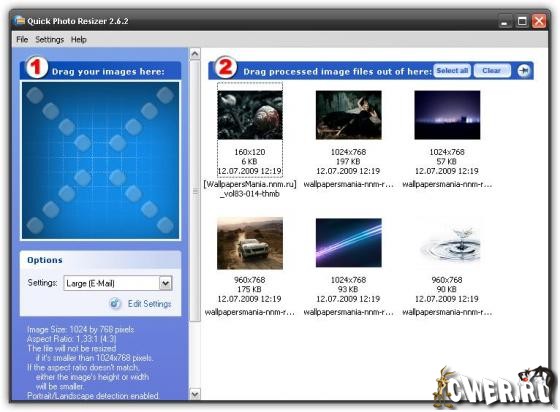 DzSoft выпустила новую версию программы для пакетного изменения размеров изображений - Quick Photo Resizer (старое название Quick Web Photo Resizer). Пользователь выбирает требуемый размер изображений и перетаскивает необходимое количество файлов в окно программы, после чего Quick Photo Resizer обрабатывает их. Помимо этого, программа может автоматически изменять качество сжатия JPEG-файлов для каждого изображения в отдельности.
