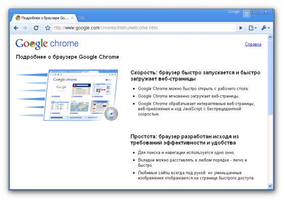 Google Chrome - веб-браузер производства Google с открытым исходным кодом, сочетающий поддержку веб-приложения и удобный поиск с высокой скоростью и стабильностью. В Chrome использованы наработки Apple WebKit и Mozilla Firefox. Из особенностей Chrome разработчики особо выделяют изолированные вкладки, предотвращающие сбой работы программы и обеспечивающие более надёжную защиту от опасных сайтов. Кроме этого, в Chrome реализован новый движок JavaScript V8, который позволит браузеру работать с веб-приложениями нового поколения.