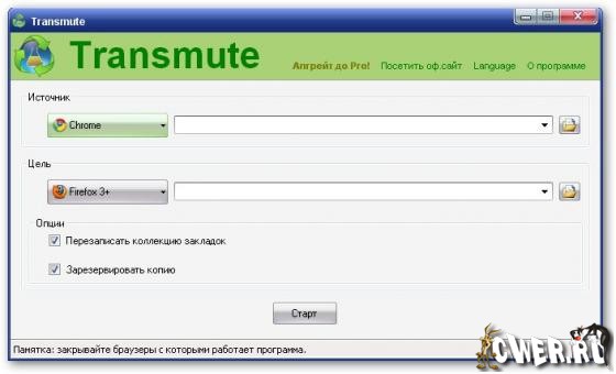 Transmute экспортирует закладки из одного браузера в другой, поэтому разбираться с их настройками не придется. С помощью Transmute закладки передаются из одной версии Firefox в другую (поддерживается как 2, так и 3), в Internet Explorer, Google Chrome и Opera. Нужно лишь выбрать исходный и целевой браузеры, и программа автоматически определит расположение закладок в каждом из них. А затем нажать на кнопку Export. При необходимости, Transmute переименует целевую папку и добавит к названию временную метку, что пригодится при создании резервных копий.