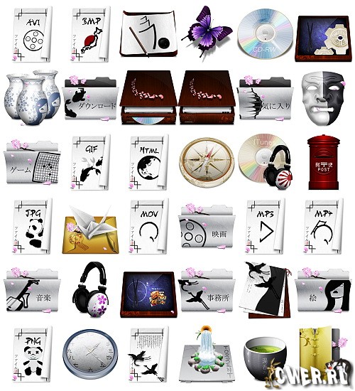 Иконки для ваших документов, в 5 стилях: воздушные, огненные, растительные, водные и чёрные. В двух форматах: ICO и PNG, размером: 512х512, 160 шт