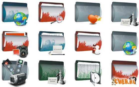 Оригинальные иконки для папок с различным содержимым.