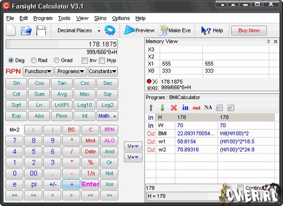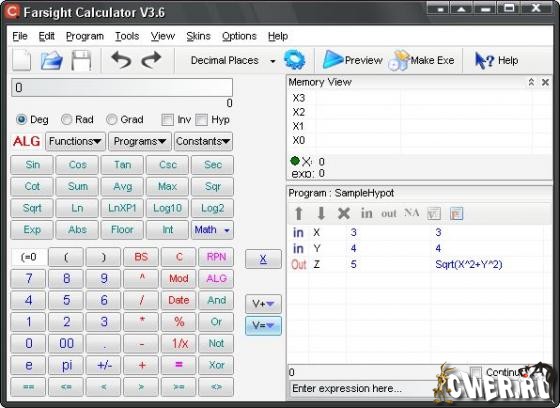 Farsight Calculator - удобный в работе программируемый Калькулятор, который позволяет сохранять процесс вычисления как программу или функцию, и выполнять арифметические операции любым RPN (Reverse Polish Notation) или ALG (Алгебраический) методом.