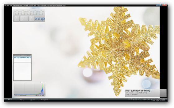 FastPictureViewer - простой в использовании просмотровщик графических файлов. Основным достоинством программы является очень быстрая работа с файлами большого размера, которое заключается в том, что используется не классические методы рендеринга изображений, а считывает их с помощью графического чипа видеокарты. Программа не имеет расширенных возможностей, предлагаемых прочими приложениями (типа редактирования и конвертирования файлов), но со своей основной функцией справляется замечательно. Поддерживается просмотр отдельных файлов и целых папок, имеется набор самых простых опций. В бесплатной версии программы поддерживаются только форматы JPEG и Microsoft HD Photo (*.hdp, *.wdp).