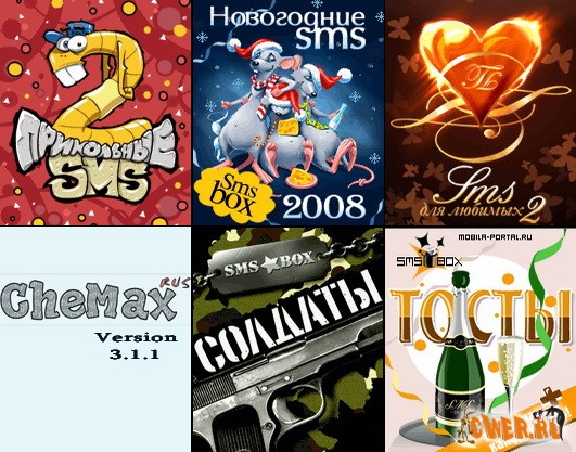 Самая полная коллекция sms-анекдотов, афоризмов, стихов, загадок и других приколов, доступная в мобильном телефоне. В SMS-BOX вошли более 500 sms-приколов, объединенных в 17 разделов. Размеры экранов: 128х160, 132х176, 176х204, 176х220, 240х320.