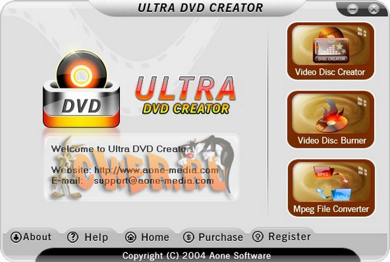 Ultra DVD Creator - мощный и удобный инструмент для создания DVD, VCD или SVCD видео дисков из, практически, всех видео-форматов AVI, DivX, XVid, MPEG, WMV, ASF, MOV, RM, MP4 и FLV. Благодаря возможностям данной утилиты вы сможете просматривать свою коллекцию видео файлов на обычном DVD-плеере у себя дома. С помощью этого программного обеспечения вы сможете конвертировать любые видео файлы в DVD, VCD или SVCD совместимый Mpeg-файл и записать его на CD или DVD диск. Используйте данную программу для создания VCD / DVD из ваших записей с видеомагнитофона, веб-камеры или скачанных файлов из интернета. Вы сможете создавать DVD-диски без каких либо специальных знаний в этой области.