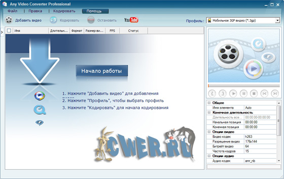 Any Video Converter Pro - это программа с графическим интерфейсом, быстрой скоростью и высоким качеством, позволяющее легко переводить видео в различные форматы. Данное средство позволяет вам без лишних усилий переводить видео файлы в любой формат! Программа может переводить практически все видео средства, включая DivX, XviD, MOV, rm, rmvb, MPEG, VOB, DVD, WMV, AVI в формат MPEG-4 для iPod/PSP или других портативных видео устройств, МР4 плейера или смартфона. Программа обладает невероятно быстрой скоростью и высоким качеством. Any Video Converter позволяет вам получать удовольствие от просмотра любого формата видео на вашем iPod, Zune, PSP, мобильном телефоне или МР4 плейере.