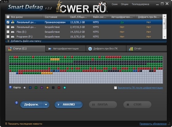 SmartDefrag — приложение для дефрагментации диска, позволяющая в автоматическом режиме незаметно для пользователя и производительности системы дефрагментировать файлы непосредственно во время работы компьютера. Скачай бесплатно на Cwer.ru.