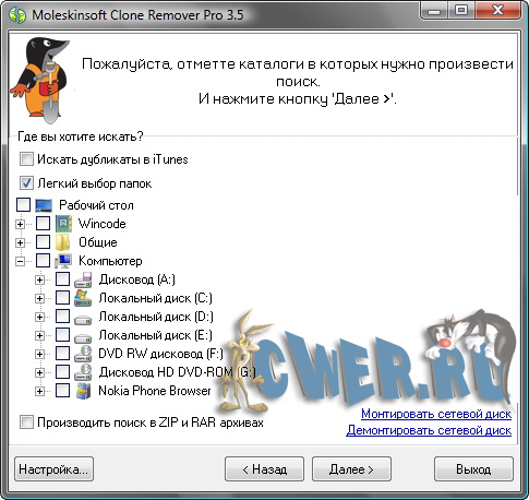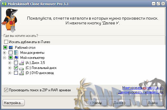 Moleskinsoft Clone Remover – мощная программа, которая осуществляет поиск дубликатов (одинаковых) файлов. Она поможет найти любые одинаковые файлы на вашем компьютере, не исключая RAR и ZIP архивы. Например, файлы изображений, музыки(mp3) и не только.