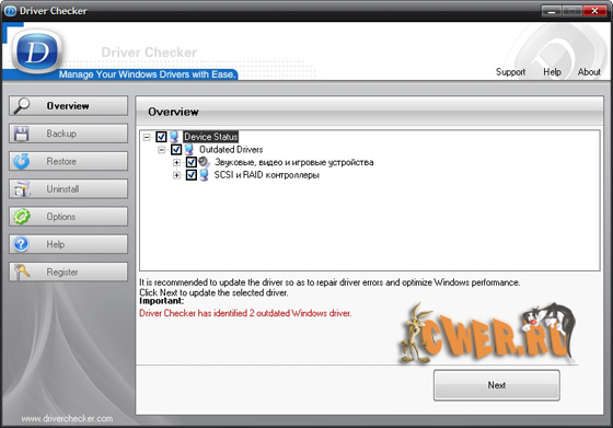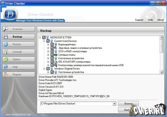 Driver Checker - новый менеджер драйверов который не только обнаружит и "вытащит" драйвера из системы для их возвращения на место после переустановки системы, но и обновит их на более свежие, из большой базы данных оригинальных драйверов от производителей. Поддерживает и автоматически обновляет драйвера: принтеров и сканеров, USB, звука, Vista, Bluetooth, мыши и клавиатуры, Видео, RAID, модемов и сетевых карт, веб-камер, графических карт, VGA и других Windows-драйверов.