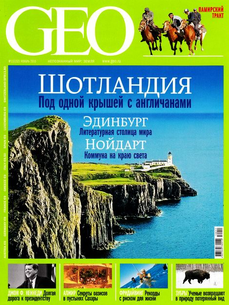 GEO – это журнал о путешествиях и о культуре народов разных стран, о достижениях в сфере науки и техники, о животном и растительном мире, предоставляющий энциклопедически точную информацию. Фотографии GEO - это не просто иллюстрации к тексту, а уникальные работы лучших мастеров со всего света, часто работающих в экстремальных условиях.