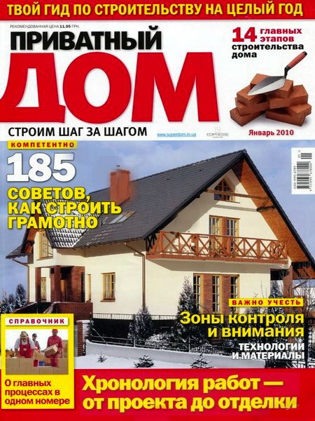 Дом, в котором мы живем, многое определяет в нашей жизни. От того, насколько в нем комфортно, тепло и уютно, зависит наше самочувствие, настроение и даже мировоззрение. Вот почему формированию «правильного» жилого пространства всегда будет уделяться особое внимание. Какие материалы и технологии существуют для решения той или иной дежурной проблемы? Каковы критерии их выбора для применения на конкретном объекте? Куда обращаться за нужной покупкой и сколько это будет стоить? Где найти хороших специалистов и во что обойдется их работа? Как сократить общие расходы, чтобы не пострадало итоговое качество? Ответы на эти и многие другие вопросы вас ждут в журнале "Приватный дом".