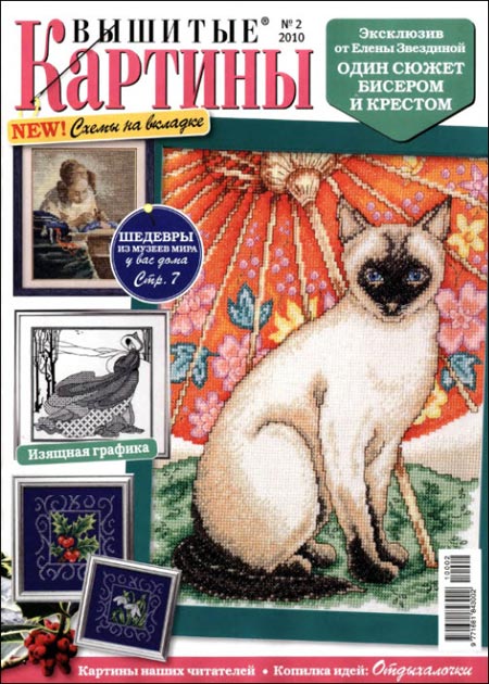 Один из лучших ежемесячных отечественных журналов по вышивке. В номере вы найдёте картины и картинки, вышитые крестиком, гладью, описание выполнения шва "роспись".