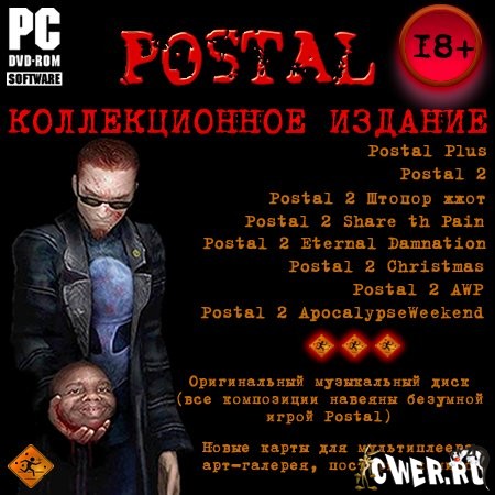 Мечта всех маньяков! Одна из самых сумасшедших игр всех времен и народов - Postal - в новом обличье! Внутри этого коллекционного издания - оригинальная игра, абсолютно все дополнения к ней, плюс эксклюзивный диск с музыкой. Реально ли использовать кошку в качестве глушителя? Что террористы забыли в американской глубинке? Почему нехорошо обливать людей бензином? Если вы хотите получить ответы на эти вопросы, то коллекционное издание Postal - это то, что вам нужно!
