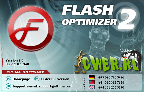 Eltima Flash Optimizer – лучшее программное решение для, веб-дизайнеров, веб-мастеров, Flash-профессионалов и всех кто когда-либо сталкивался с технологией Adobe Flash. Он позволяет уменьшить размер SWF файла на 60-70% благодаря алгоритмам векторов, образов, морфинга, Z-буфера, шрифтов и другой оптимизации. Flash Optimizer уменьшает размер не только какой-либо отдельной части Вашего Flash видеоролика, но и оптимизирует все его элементы (включая кривые, нулевые объекты, ZLib оптимизацию и др.).
