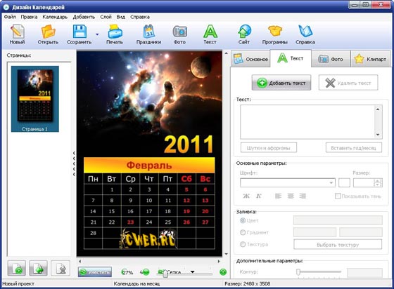 Доступная и удобная программа для создания красивых календарей с фотографиями на любой год или месяц. Достаточно выбрать формат и оформление проекта, добавить фотографии — и получить превосходный результат. В комплекте программы — огромный выбор шаблонов календарей высокого качества. Персональный календарь — это не только отличный подарок друзьям и близким, но и прекрасный рекламный продукт для вашего бизнеса!