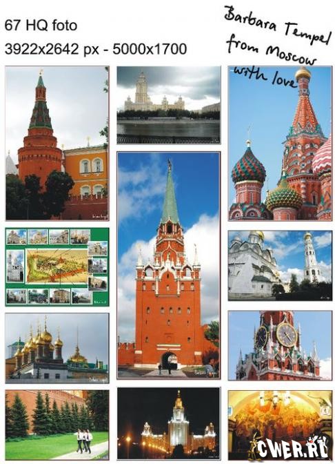 В архиве фотографии московского метро, Красной площади, Кремлёвских курантов и церквей