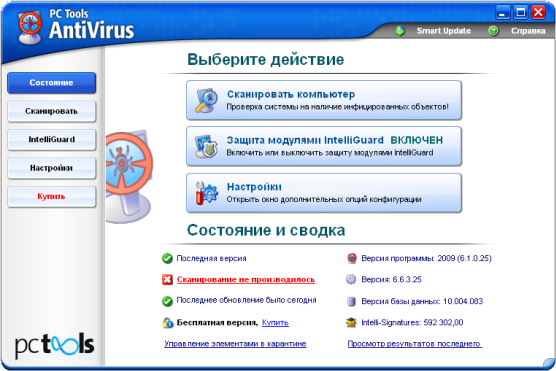 Вышла новая версия PC Tools AntiVirus - программы для защиты системы от наиболее опасных кибер-угроз (вирусов, интернет-червей, троянов), пытающихся получить несанкционированный доступ к компьютеру и персональной информации. PC Tools AntiVirus обеспечивает хорошую защиту, работая в режиме реального времени с технологией IntelliGuard™ и используя всестороннюю систему сканирования...