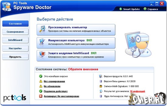Программа для защиты системы от наиболее опасных кибер-угроз (вирусов, интернет-червей, троянов), пытающихся получить несанкционированный доступ к компьютеру и персональной информации. PC Tools AntiVirus обеспечивает хорошую защиту, работая в режиме реального времени с технологией OnGuard и используя всестороннюю систему сканирования.